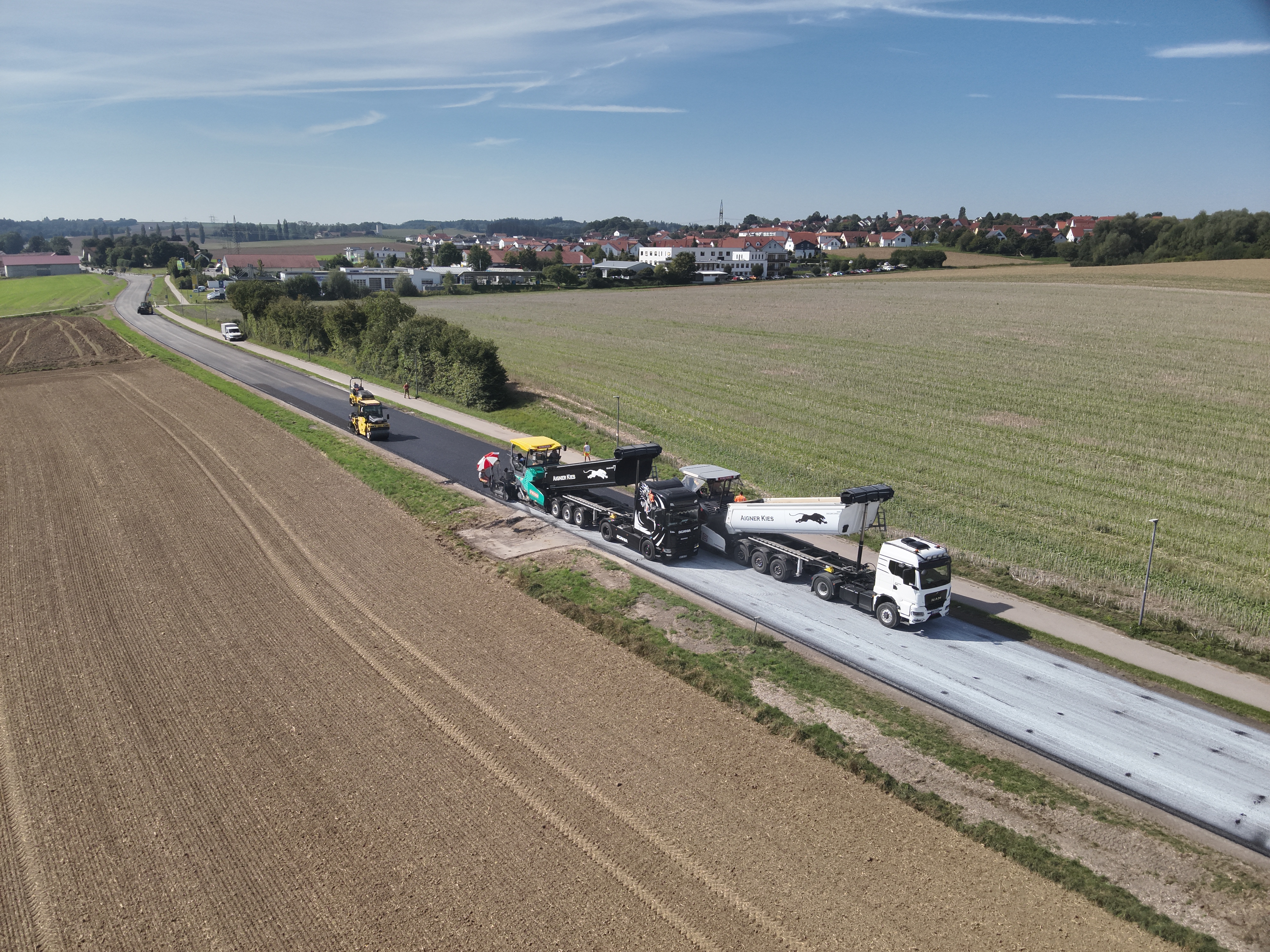 Foto: Asphaltierungsarbeiten auf der B 15 zwischen Kumhausen und Hachelstuhl.
