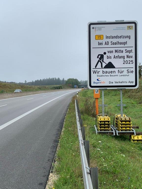 Landshut, den 11.09.25Staatliches Bauamt Landshut saniert B 15 zwischen dem Autobahndreieck Saalhaupt und der Anschlussstelle Schierling Nord